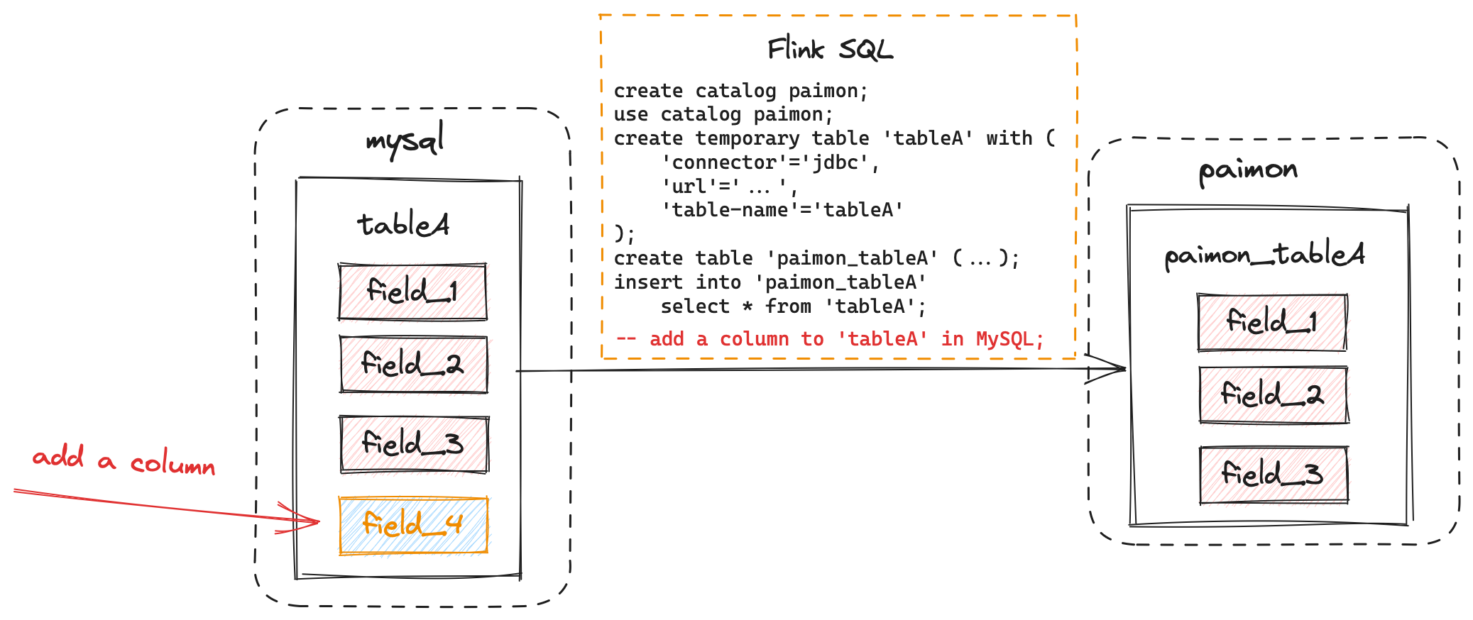 and the data of field_4 which is newly added will be synchronized to Paimon too.