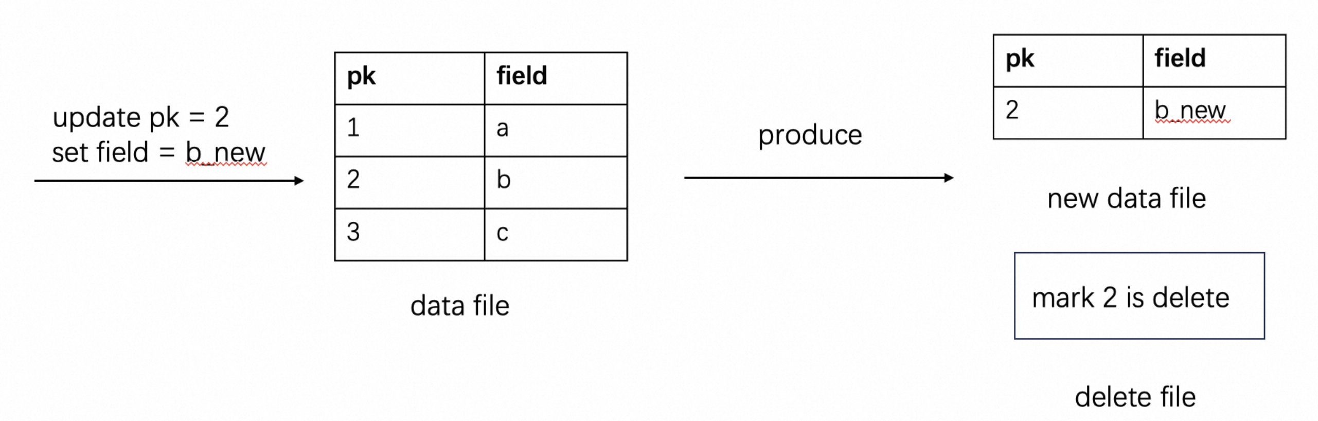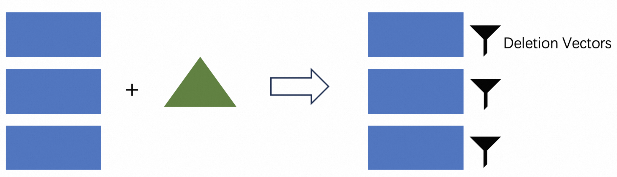 Thanks to Paimon’s LSM structure, it has the ability to be queried by primary key. We can generate deletion vectors files when writing, representing which data in the file has been deleted. This directly filters out unnecessary rows during reading, which is equivalent to merging and does not affect reading performance.